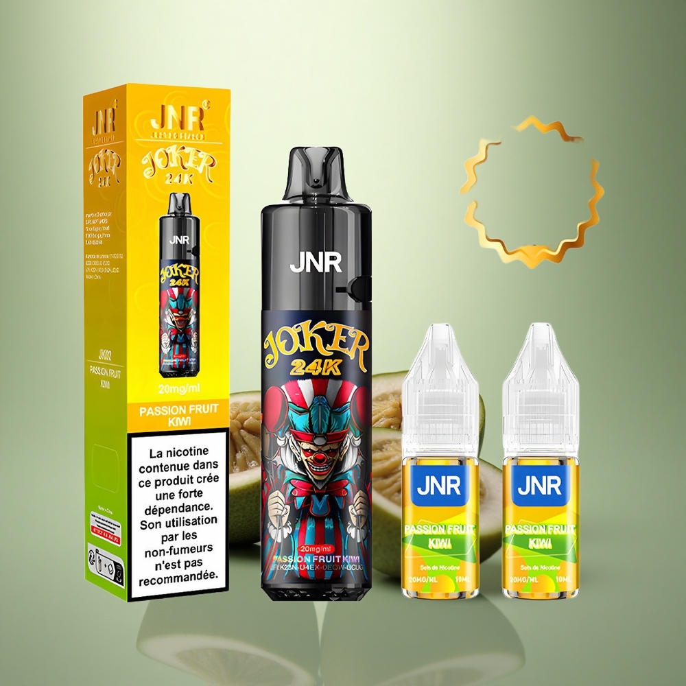 Home| Nieuwe modellen| JNR| JNR Joker 24K| JNR Joker 24K Passievrucht Kiwi Zichtbaar Vloeistofniveau 800mAh